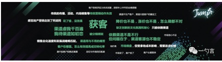 我們摘出其中的一個(gè)點(diǎn)。我們以前以電話為中心的,從拓客到判客到收客到運(yùn)營(yíng)上的一整套邏輯,應(yīng)該在微信體系下全部重做。