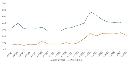 自2020年上半年租賃市場的季節(jié)性規(guī)律遭到打破,傳統(tǒng)旺季持續(xù)延期后,租客持需觀望、業(yè)主持房等待致使住房租賃市場房源成交周期、客源成交周期齊齊上漲,達到近兩年內(nèi)最高點。