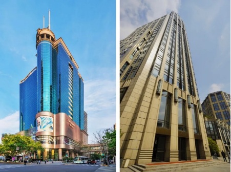 塔樓立面的工藝十分講究,挑選了香檳色鋁合金豎向裝飾條、中空Low-E玻璃,還以鋼化玻璃及背襯板為主作為窗間墻。而幕墻上豎橫相交的遮陽(yáng)桿,能降低光污染,使得全年度塔樓所受到的直接日光照射降低了20%。