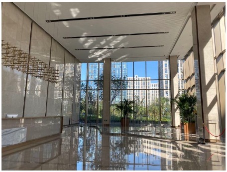 金地威新國際中心,在建筑結構上,利用首層9.7米挑高精裝大堂、下沉庭院、架空柱廊等層次分明的空間規(guī)劃,虛實相融,創(chuàng)造出既統(tǒng)一和諧又富有變化的建筑形象,強化建筑內部與外部空間的互動,塑造整個園區(qū)的活力。