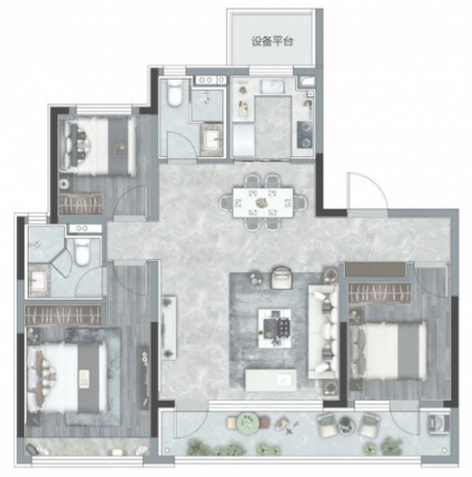 中間是餐客一體的公區(qū),南北通透,在盡可能控制面積的同時(shí),很好地兼顧了舒適尺度,殊為不易。相比其它120㎡左右的戶型,景粼玖序這個(gè)戶型還有一個(gè)特點(diǎn)是8.1m的超寬觀景陽(yáng)臺(tái)設(shè)計(jì),這是許多150平方米大戶型住宅都不曾有的奢配。