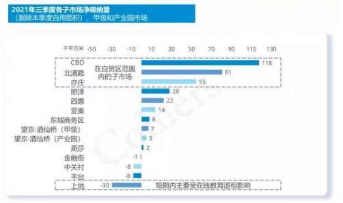 2021年三季度各子市場凈吸納量數(shù)據(jù)表現(xiàn)