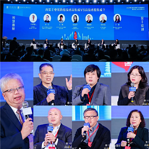 針對(duì)內(nèi)裝工業(yè)化應(yīng)實(shí)現(xiàn)低技術(shù)高集成還是高技術(shù)低集成,行業(yè)內(nèi)有著不同的看法。本屆全裝修產(chǎn)業(yè)領(lǐng)袖峰會(huì)暨內(nèi)裝工業(yè)化發(fā)展論壇帶來(lái)了“莫干論劍, 智慧激辯”, 本場(chǎng)對(duì)話由杭蕭鋼構(gòu)副總裁、總工程師方鴻強(qiáng)先生、清華大學(xué)建筑設(shè)計(jì)研究院建筑產(chǎn)業(yè)化分院副院長(zhǎng)宋兵先生、北京市住宅產(chǎn)業(yè)化集團(tuán)副總經(jīng)理王煒先生、綠城集團(tuán)產(chǎn)品精裝修總監(jiān)段叔君女士作為“低技術(shù)高集成”的A組代表方;北京市建筑設(shè)計(jì)研究院總建筑師劉曉鐘先生、當(dāng)代置業(yè)集團(tuán)總工程師李名仿先生、歐派家居工程事業(yè)部副總經(jīng)理寧惠女士作為“高技術(shù)低集成”的B組代表方。在場(chǎng)嘉賓圍繞“內(nèi)裝工業(yè)化的低技術(shù)高集成VS高技術(shù)低集成?”開(kāi)展對(duì)話,共同探討內(nèi)裝工業(yè)化的技術(shù)和集成,賦能當(dāng)今裝配式內(nèi)裝發(fā)展。