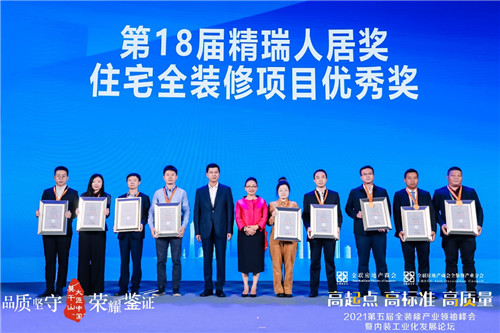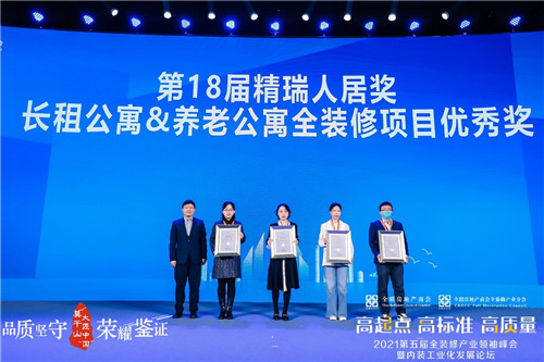 匠心傳承,璀璨星光。中交海投黨委副書記、總經(jīng)理,全聯(lián)房地產(chǎn)商會(huì)全裝修產(chǎn)業(yè)分會(huì)常務(wù)副會(huì)長(zhǎng)周濟(jì)為第18屆精瑞人居全裝修優(yōu)秀項(xiàng)目的獲獎(jiǎng)企業(yè)授牌;精瑞人居獎(jiǎng)勵(lì)委員會(huì)秘書長(zhǎng)陳江根先生為第18屆精瑞人居獎(jiǎng)長(zhǎng)租公寓和養(yǎng)老公寓全裝修優(yōu)秀項(xiàng)目進(jìn)行表彰。