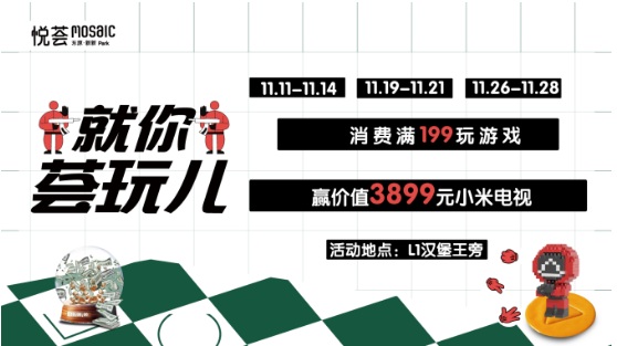 11月11日,東原·悅薈·新新Park正式開啟了長達(dá)十天的韓國爆火網(wǎng)劇同款主題游戲“就你薈玩兒”。活動期間任意消費滿199元即可參與挑戰(zhàn),游戲設(shè)有超好玩的打畫片、椪糖、吹乒乓球等關(guān)卡,通過重重難關(guān),即可贏取終極大獎:價值3899元小米電視機,各種趣味緊張的游戲,不斷挑戰(zhàn)消費者的智力、眼力與體力,看看誰能拔得頭籌,成為“最強玩家”!