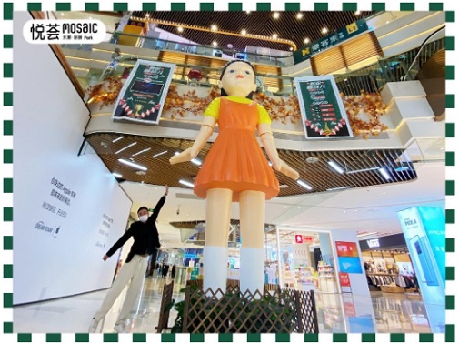 而UG中庭舞臺中,網(wǎng)劇同款高還原度的超6米巨型女孩人偶絕對是當(dāng)之無愧的C位,吸引了大波粉絲前往參觀打卡。同時還可以看到,一大批面具人在館內(nèi)巡游,隨時派發(fā)“游戲懸賞令”任務(wù)卡片。當(dāng)熟悉的BGM響起,腎上腺素瞬間激增,驚悚恐怖的氛圍加上最直觀的視覺感受,一時間在場內(nèi)激起超高人氣的互動,也在購物之余增添了一絲娛樂休閑色彩。