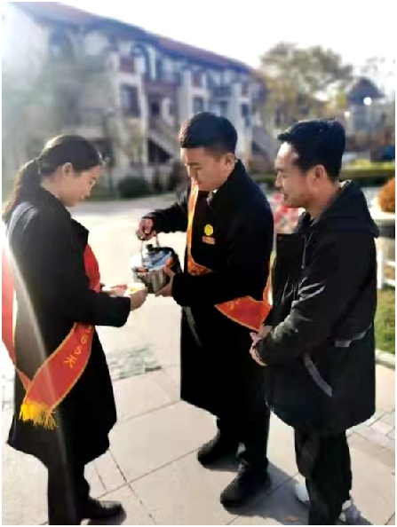 新的一天又開(kāi)始了,與往常不一樣的是,在小區(qū)各出入口開(kāi)啟清晨送愛(ài)心大行動(dòng),出門(mén)即可收到一份冬日小驚喜,物業(yè)人員親手熬制的暖心茶,讓美好一天就此啟程。