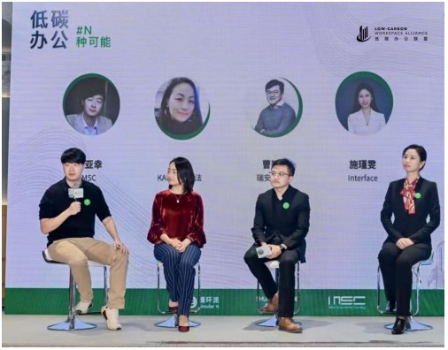 在圓桌討論環(huán)節(jié)中,低碳辦公聯(lián)盟發(fā)起方及首批聯(lián)盟成員代表:瑞安辦公、MSC咨詢、KAFFTEC咖法及Interface就“開啟低碳辦公時代”話題展開討論。