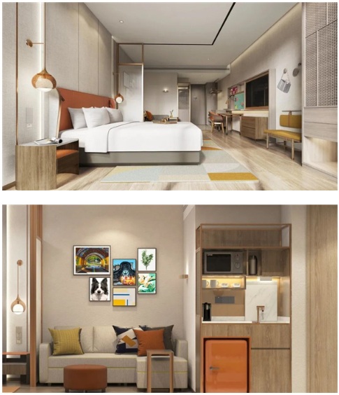 筆者曾探訪過希爾頓惠庭樣板房,沉浸式體驗了這個富有創(chuàng)新精神及現(xiàn)代感的中高端旅居酒店品牌如何在28平方客房設計出“套房”體驗:專屬希爾頓惠庭客房特色配套的生活吧——配置了微波爐、咖啡機、全功能冰箱等更豐富的居家化設備,還有筆者特別喜歡的帶著滑輪可四處游走的工作桌以及組合沙發(fā)(拆開就是一張床),只要喜歡,可隨意排列組合;單單是通過布局、色彩搭配、家具材料與選型,就表達出居家化感受、提供舒適自在的居家場景化體驗。想象一下,未來攜三五好友或者一家三口,入住這樣的房間,叫個外賣和朋友一起圍桌打牌,抑或采買當?shù)靥厣氤墒焓称泛图胰艘黄鹞⒓庸じ惺墚惖氐膹N房樂趣……方寸之間盡享旅居新生活,新鮮之中又不失居家的熟悉感與溫馨氛圍。更重要的是,如此豐富又多元的產(chǎn)品,單房投入控制在16-18萬左右。
