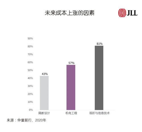 仲量聯(lián)行認(rèn)為,盡管總體的裝修成本依然保持上漲趨勢,但這并不影響大部分企業(yè)對辦公空間的投資,以期為員工創(chuàng)造安全的工作環(huán)境,提升工作效率。雖然企業(yè)或?qū)⒅匦聦徱暺洳粍赢a(chǎn)組合,但從建設(shè)企業(yè)文化以及吸引和留住人才的層面考慮,辦公空間仍將是不可或缺的。