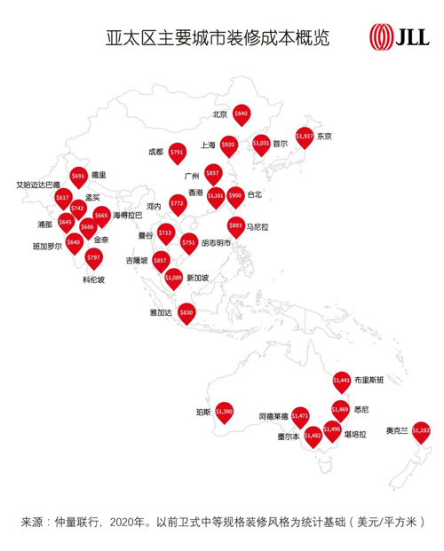 在進(jìn)行2021年及往后階段的資本支出規(guī)劃時,了解裝修成本狀況是提升公司整體財務(wù)績效的關(guān)鍵環(huán)節(jié)。近日,仲量聯(lián)行發(fā)布《2020-2021年亞太地區(qū)裝修成本指南》,該指南以亞太區(qū)30個城市的裝修成本信息數(shù)據(jù)為基礎(chǔ),幫助企業(yè)作出明智的決策,順利過渡到“下一個新常態(tài)”。