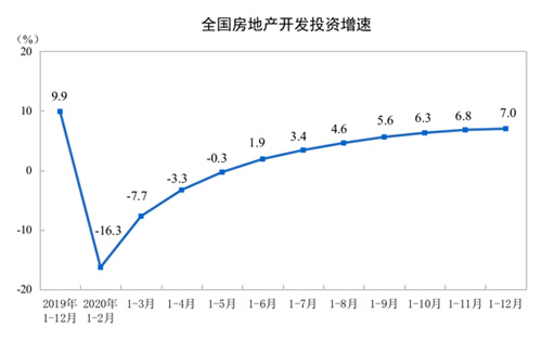 2020年1—12月份,全國房地產(chǎn)開發(fā)投資141443億元,比上年增長7.0%,增速比1—11月份提高0.2個(gè)百分點(diǎn),比上年回落2.9個(gè)百分點(diǎn)。其中,住宅投資104446億元,增長7.6%,增速比1—11月份提高0.2個(gè)百分點(diǎn),比上年回落6.3個(gè)百分點(diǎn)。
