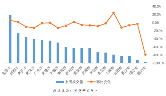 貝殼平臺(tái)全國(guó)重點(diǎn)18城上周成交量情況