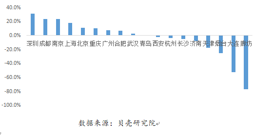 鏈家重點(diǎn)城市1月周均二手住宅實(shí)際成交較去年12月周均變動(dòng)