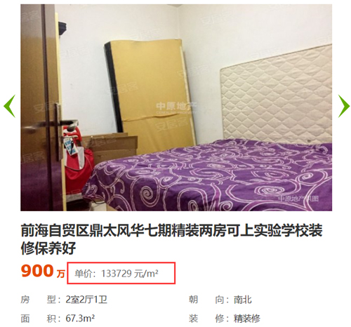 而目前,同樣位于前海片區(qū)的前海時(shí)代小區(qū),掛牌價(jià)高達(dá)每平方米17至20萬元之間。