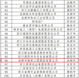 (成都路橋榮獲四川民營(yíng)企業(yè)100強(qiáng))