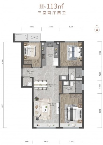 111平的三居戶型,整體形狀類似四葉草,非常方正,每個(gè)臥室的空間都足夠舒服,客餐廳是LDK的設(shè)計(jì)。
