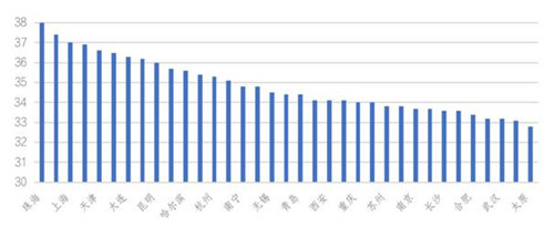 圖:2021年35城置業(yè)平均年齡分布情況(歲)