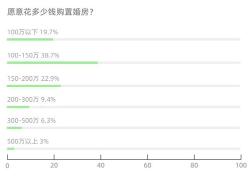 《報告》稱,研究發(fā)現(xiàn),54.1%的受訪者拒絕租房結(jié)婚,其中95后的接受度最低。近8成人購置婚房的預算在200萬以下,且超半數(shù)受訪者認為房產(chǎn)證要寫上夫妻雙方的姓名。