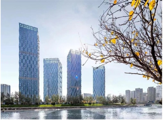 一方面,項(xiàng)目整體以現(xiàn)代立體美學(xué)風(fēng)格設(shè)計(jì),高層建筑采用全玻璃幕墻包裹,配以如波浪起伏的線條勾勒,與錦江形成完美呼應(yīng),頗有動(dòng)態(tài)美感。