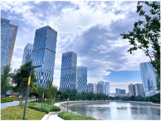 熟悉成都的人,一眼就認(rèn)出來(lái)了,這是國(guó)際城南金融城。而拍攝出這組畫(huà)面的點(diǎn)位,就在金融城三期的文創(chuàng)藝術(shù)地標(biāo)——藝尚錦江附近。
