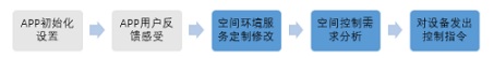 APP和平板是入駐客戶和管理人員操作云端控制系統(tǒng)的主要途徑。有權(quán)限的用戶可以通過APP或平板反饋對環(huán)境的需求。如剛從室外進(jìn)入辦公室的客戶感覺很熱,可使用APP或平板環(huán)境調(diào)節(jié)功能,反饋“熱死了”,系統(tǒng)會(huì)據(jù)此啟動(dòng)一系列的調(diào)整。