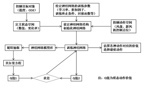 決定每個(gè)空間每一時(shí)刻的目標(biāo)區(qū)間后,系統(tǒng)將根據(jù)訓(xùn)練得到的神經(jīng)網(wǎng)絡(luò)模型和實(shí)時(shí)數(shù)據(jù)給出當(dāng)前時(shí)刻的控制動(dòng)作。同時(shí)對神經(jīng)網(wǎng)絡(luò)模型進(jìn)行定期線上或線下更新。