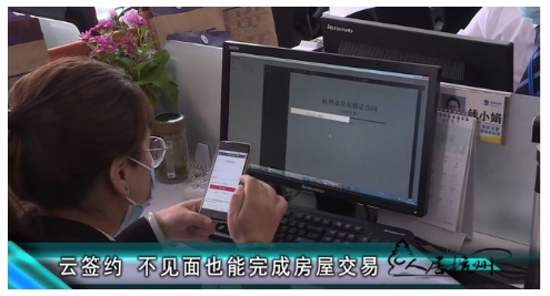 目前,身處杭州之外的購(gòu)房人、售房人都可以成功“云簽約”。原來(lái)需要簽署5-7份房屋交易合同,現(xiàn)在“云簽約”電子簽名一遍即可,并且最快兩分鐘就能完成合同簽約全部流程。