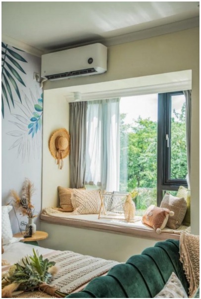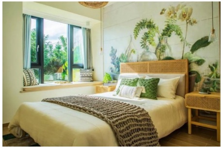 斜陽(yáng)透過(guò)溫柔的紗簾進(jìn)入寧?kù)o的房間里,柔和清澈。仿佛把山水的悠然靜謐搬進(jìn)臥室。