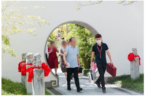 面對(duì)特殊的疫情環(huán)境,建發(fā)房產(chǎn)采用預(yù)約制交房,一站式手續(xù)辦理,讓交付現(xiàn)場(chǎng)井然有序。業(yè)主剛出車門,客服禮儀一路引導(dǎo)至售樓處門口。紫銅大門邊恭候已久的置業(yè)顧問(wèn),為業(yè)主送上鮮花,踏過(guò)消毒地毯、測(cè)溫、登記井然有序。