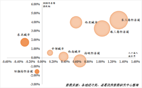 圖:各經(jīng)濟(jì)圈人口流動與房價漲跌幅