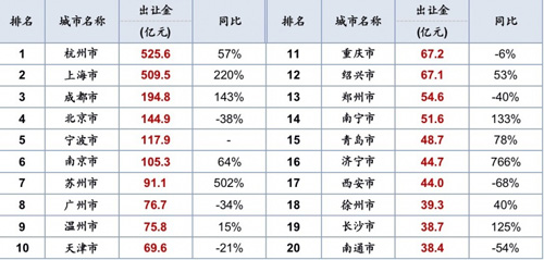 1月全國(guó)土地出讓金TOP20來(lái)源:中指院