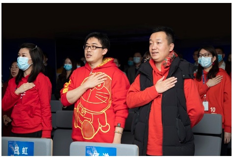 我愛我家集團(tuán)領(lǐng)導(dǎo)和員工在活動中齊唱司歌