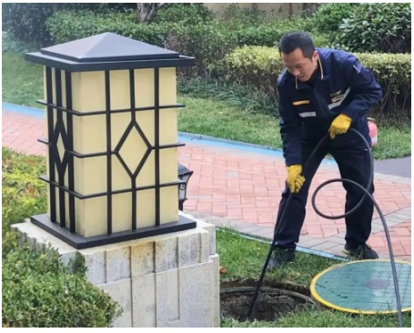 工作人員排查小區(qū)內(nèi)窨井設(shè)施,對(duì)存在安全隱患的窨井蓋及時(shí)進(jìn)行維修更換,排查各類管網(wǎng)、雨排口、雨漏管、雨篦子,清理消殺垃圾桶、垃圾站,維修路燈、窗紗。
