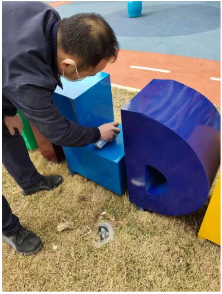 維修工作人員對(duì)小區(qū)內(nèi)所有設(shè)施設(shè)備進(jìn)行刷漆換新,如路燈桿、窨井蓋等。給業(yè)主一個(gè)煥然一新的生活環(huán)境。