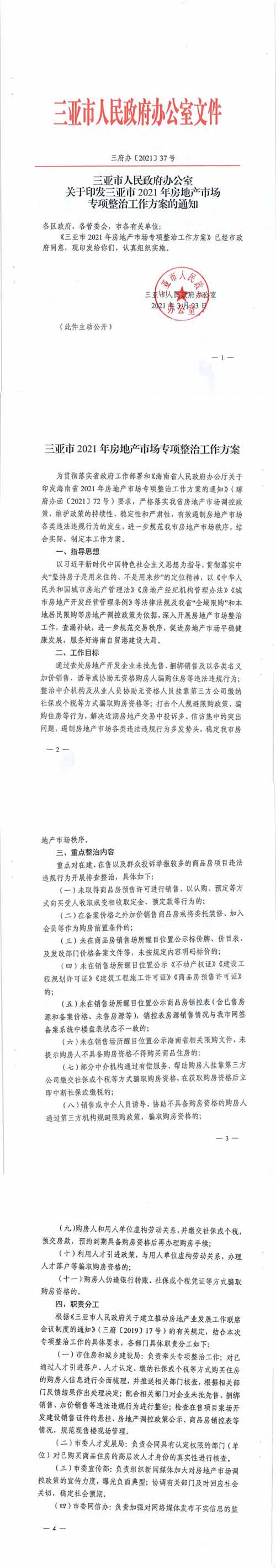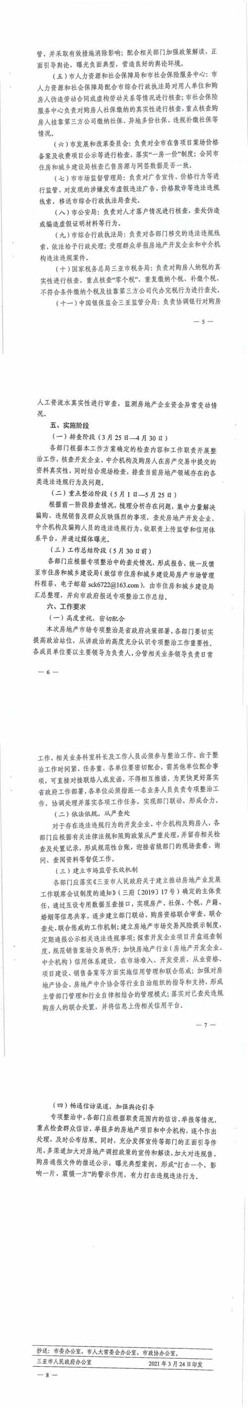 房訊網(wǎng)訊 近日,三亞市人民政府辦公室印發(fā)《三亞市2021年房地產(chǎn)市場專項整治工作方案》,嚴(yán)格落實房地產(chǎn)市場調(diào)控政策,遏制房地產(chǎn)市場各類違法違規(guī)行為的發(fā)生,進(jìn)一步規(guī)范房地產(chǎn)市場秩序。