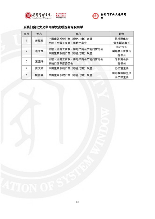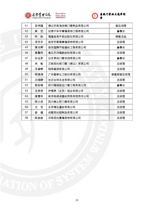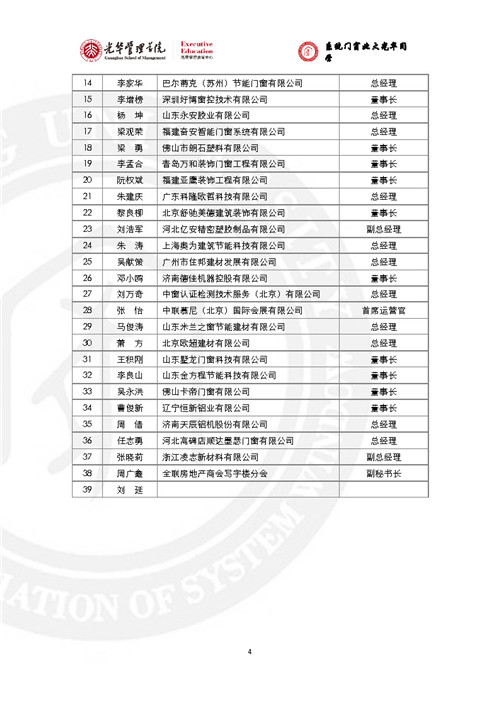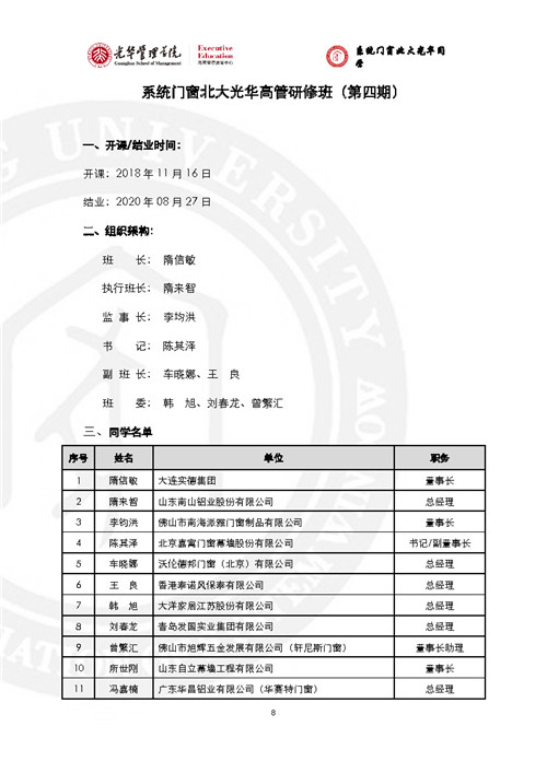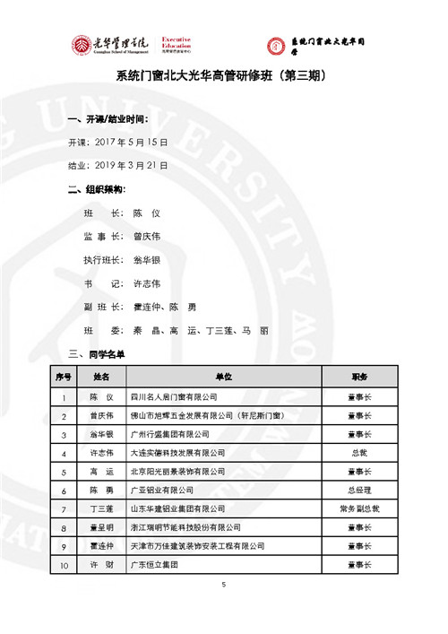 房訊網(wǎng)訊 門窗行業(yè)黃埔軍!跋到y(tǒng)門窗北大光華研修班”已辦至第五期,現(xiàn)將全部5期名錄發(fā)出來,供同行參考。
