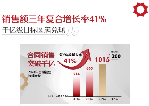 2017年,中駿集團確立2020年達到“千億級規(guī)模”的戰(zhàn)略目標。2020年,中駿堅定落地以地產(chǎn)開發(fā)為主體、FUNWORLD購物中心和FUNLIVE長租公寓為兩翼的“一體兩翼”戰(zhàn)略,如期兌現(xiàn)“千億”目標,集團連同其合營公司及聯(lián)營公司全年累計實現(xiàn)合同銷售金額約1015.37億元,同比增長26%,合同銷售面積約736.78萬平方米,同比增長16%。2018年至2020年,中駿集團的合同銷售額三年復合增長率達到41%,在整體行業(yè)低迷的情況下持續(xù)保持增長動力,穩(wěn)步進入千億,也為公司今后的發(fā)展爭取了經(jīng)營優(yōu)化的空間和轉(zhuǎn)型換道的時間。