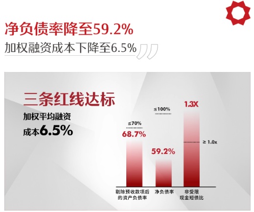 “三道紅線”融資政策的出臺,意味著靠負債博增長的模式和時代終將宣告結(jié)束,強運營體系房企將有望在資本市場獲得更高收益。2020年,中駿集團“三道紅線”指標均為綠檔,其中剔除預收款后的資產(chǎn)負債率為68.7%,凈負債率降至59.2%,現(xiàn)金短債比為1.3。