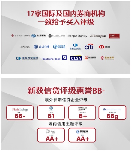 值得一提的是,2016-2020年的集團凈負債率分別為80.2%、71.8%、60.4%、60%、59.2%。2020年,集團總資產(chǎn)達到1706億元,同比上升14%。與此同時,集團2020年平均融資成本降至6.5%,較上年下降0.2個百分點。中駿集團穩(wěn)健的財務表現(xiàn)也獲得諸多專業(yè)機構(gòu)認可,先后17家國際及國內(nèi)券商一致給予買入評級;并于不久前獲評級機構(gòu)惠譽給予企業(yè)評級 “BB-”, 展望穩(wěn)定。