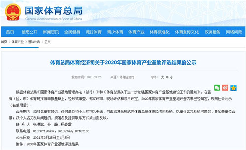房訊網(wǎng)訊 近日,國家體育總局體育經(jīng)濟司對2020年國家體育產(chǎn)業(yè)基地評選結(jié)果進行公示。據(jù)悉,本次公示的國家體育產(chǎn)業(yè)基地共包含三種類型,分別是13個國家體育產(chǎn)業(yè)示范基地、33個國家體育產(chǎn)業(yè)示范單位與33個國家體育產(chǎn)業(yè)示范項目。