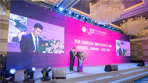 系統(tǒng)門窗專家委員會副主任、廣東皇派定制家居集團股份有限公司總工程師周譜峰宣讀了《建筑系統(tǒng)門窗技術(shù)導(dǎo)則》2.0版編寫單位、參編單位、起草人名單,共有91家單位、84位行業(yè)專家參加的編寫工作。