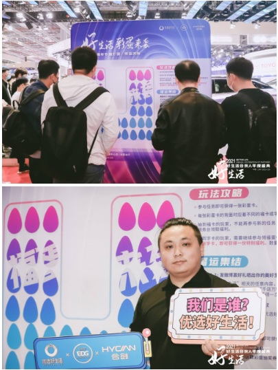 盛典活動(dòng)場外的“巨蛋”激發(fā)起人們的好奇心。好生活×合創(chuàng)汽車展位的福蛋、扭蛋同樣也吸引了關(guān)注。