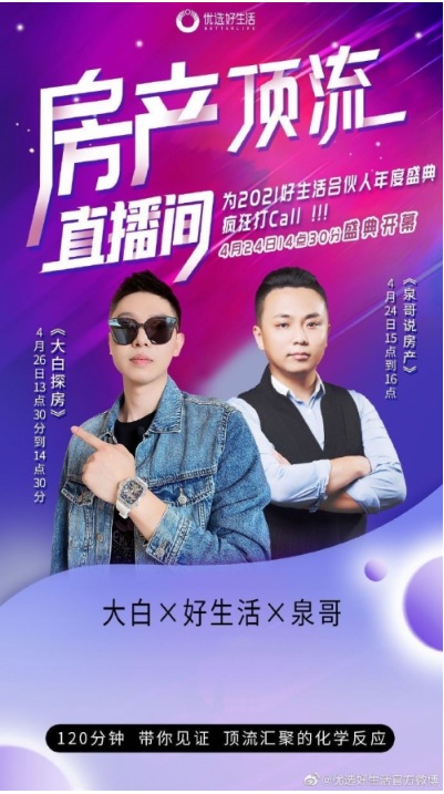 達(dá)人直播,蓄勢(shì)待發(fā)。“大白探房”“小易講房”以及“獨(dú)數(shù)一幟牛油果”將在4月26日現(xiàn)身好生活合伙人盛典活動(dòng),與嘉賓互動(dòng)或?yàn)榉劢z直播。