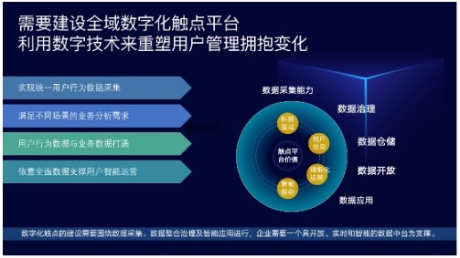 企業(yè)實現(xiàn)全域觸點數(shù)字化,是要建設企業(yè)與客戶的數(shù)據(jù)鏈接、獲取能力,通過數(shù)據(jù)感知市場、客戶需求的變化,高效的決策,滿足用戶需求。但是很多地產(chǎn)企業(yè)對客戶觸點數(shù)據(jù)沒有實現(xiàn)全面的采集,沿用傳統(tǒng)的方式去獲取數(shù)據(jù),在用戶需求的變化時,因缺乏數(shù)據(jù)洞察導致需求滿足響應速度慢,失去競爭優(yōu)勢。
