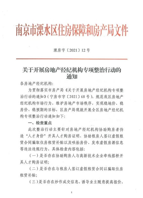 房訊網(wǎng)訊 近日,針對(duì)中介惡意炒作房價(jià)、經(jīng)紀(jì)機(jī)構(gòu)違規(guī)經(jīng)營、違規(guī)開具有關(guān)證明、提供虛假租賃合同等房地產(chǎn)市場亂象,南京市溧水區(qū)發(fā)布《關(guān)于開展房地產(chǎn)經(jīng)紀(jì)機(jī)構(gòu)專項(xiàng)整治行動(dòng)的通知》,開展專項(xiàng)整治行動(dòng),嚴(yán)厲打擊這些亂象。