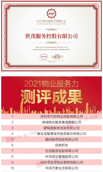 (世茂服務(wù)榮獲“2021物業(yè)服務(wù)力TOP7企業(yè)”)