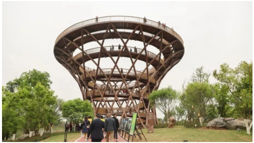 “五年前,我曾經(jīng)到蓮花湖濕地公園參觀過,原來這里有300多家農(nóng)家樂,F(xiàn)在所有的農(nóng)家樂都不見了,全部變成了很美麗的景觀。特別是這個(gè)有時(shí)來運(yùn)轉(zhuǎn)寓意的‘轉(zhuǎn)轉(zhuǎn)樓’(觀鳥臺(tái)),特別有意思,特別的漂亮!”重慶市政協(xié)委員、重慶達(dá)州商會(huì)會(huì)長廖洪海為近年來通川的蝶變豎起了大拇指。