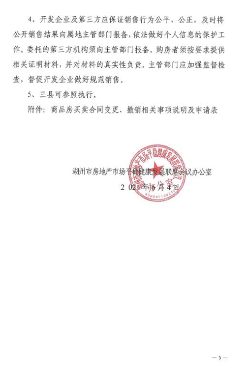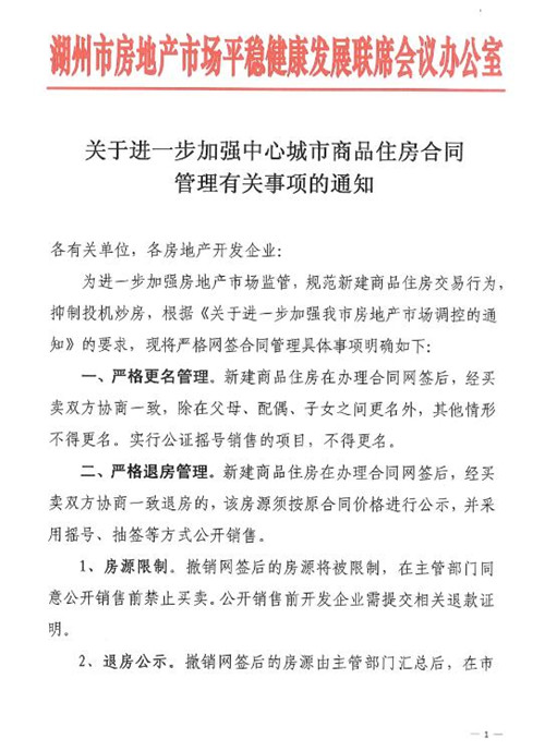 房訊網(wǎng)訊 6月4日,浙江省湖州市住房和城鄉(xiāng)建設(shè)局發(fā)布《關(guān)于進一步加強中心城市商品住房合同管理有關(guān)事項的通知》!锻ㄖ访鞔_,新建商品住房在辦理合同網(wǎng)簽后,經(jīng)買賣雙方協(xié)商一致,除在父母、配偶、子女之間更名外,其他情形不得更名。實行公證搖號銷售的項目,不得更名。