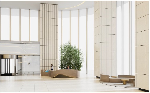 未來,瑞虹企業(yè)天地的首層大堂將延續(xù)綠色生態(tài)的理念,以“城市森林”為主題,通過原木、竹編及天然綠植等組合方式,將自然、生態(tài)引入室內(nèi)空間,營造輕松溫暖的視覺感受,讓人們自踏入大堂起便能感受到有歸屬感、溫度感的辦公氛圍。
